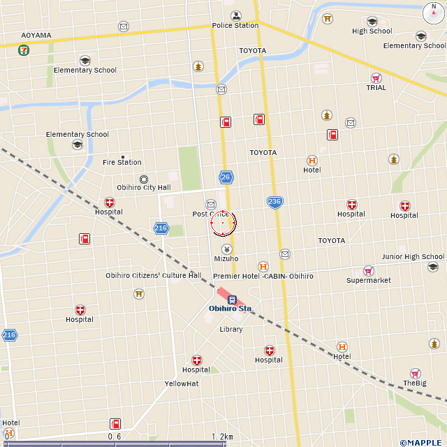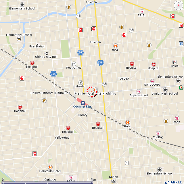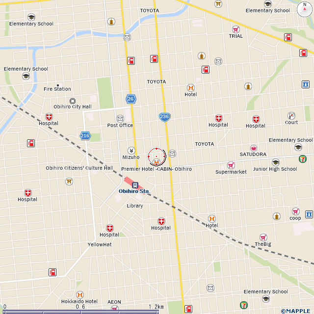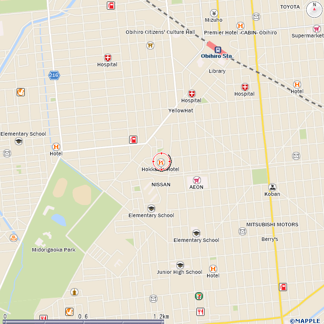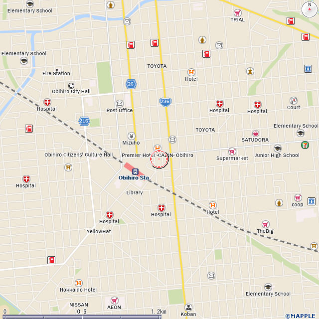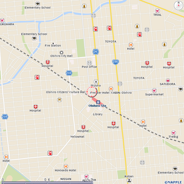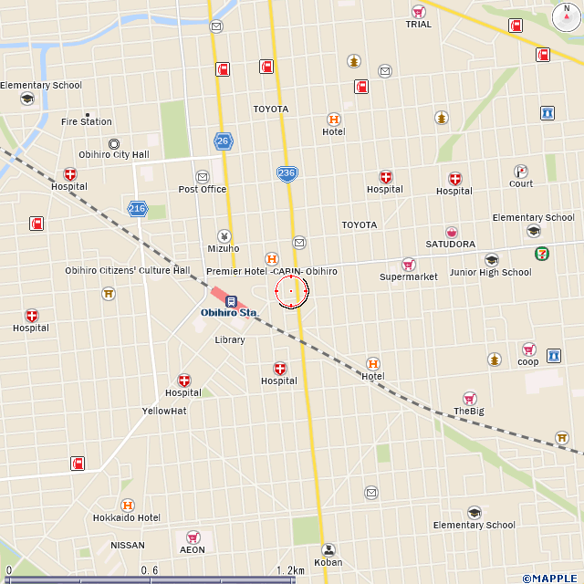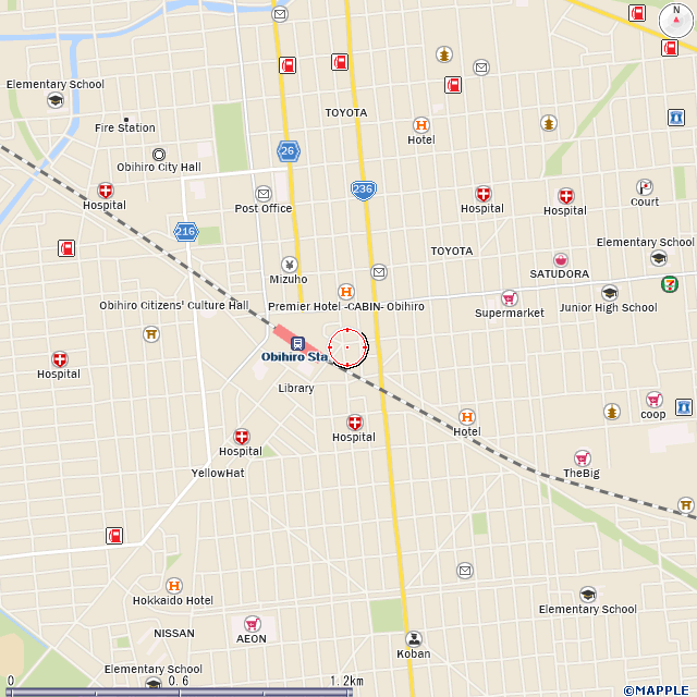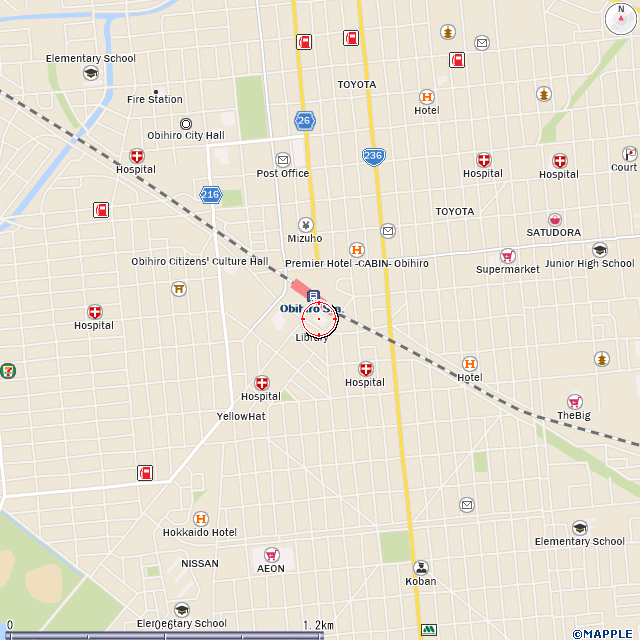- 2 min. walk from the north exit of JR Obihiro Sta.